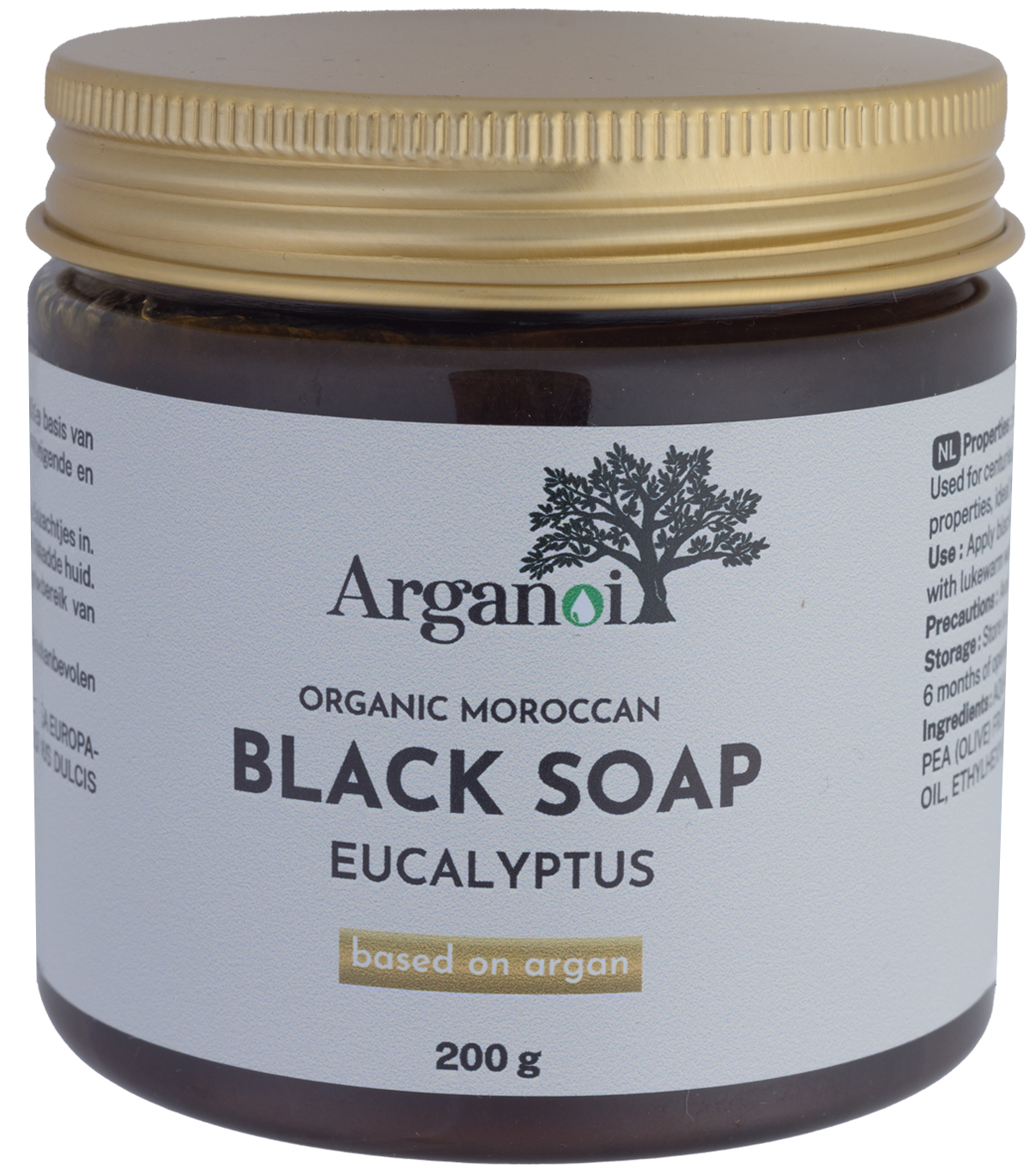 Productbeschrijving (NL) Wat is het? Marokkaanse zwarte zeep (beldi) met eucalyptus, verrijkt met arganolie. De romige, donkere pasta reinigt diep, weekt dode huidcellen los en laat de huid glad en fris aanvoelen. Eucalyptus geeft een verkwikkend, aromatisch effect; arganolie voedt en ondersteunt het huidcomfort.